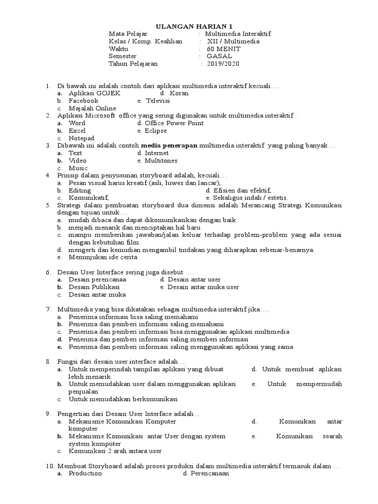 Soal Uas Multimedia Interaktif